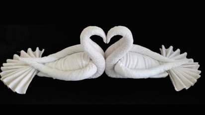 ஜோடி அன்னங்கள் செய்து இதய வடிவில் படுக்கையில் வைக்க வேண்டும். அறையில் தங்குகிறவர்களில் குழந்தைகள் இருப்பார்கள் எனில் அவர்களுக்கெனக் குட்டியானை அல்லது முயலை டவலில் செய்து வைப்பது வழக்கம்.