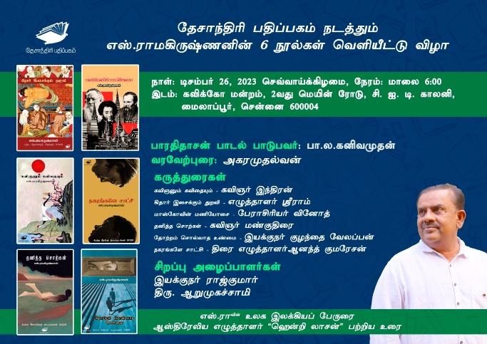 டிசம்பர் 26 செவ்வாய்கிழமை மாலை சென்னை கவிக்கோ மன்றத்தில் எனது புதிய நூல்களின் வெளியீட்டு விழா நடைபெறுகிறது. அனைவரும் கலந்து கொண்டு ஆதரவு தர வேண்டுகிறேன்