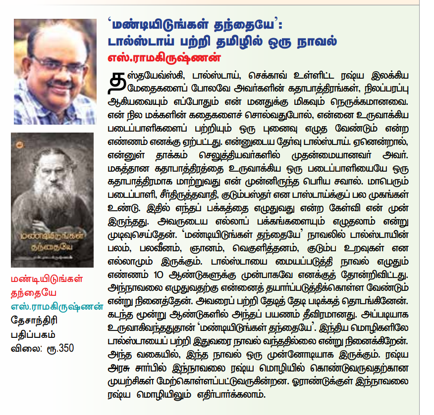 இன்றைய இந்து தமிழ் திசை நாளிதழில் எனது மண்டியிடுங்கள் தந்தையே பற்றிய அறிமுகம் வெளியாகியுள்ளது 0Shares0