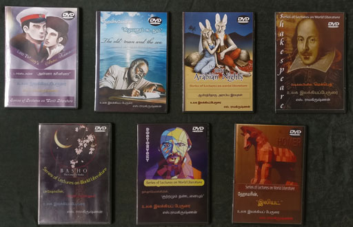 லியோ டால்ஸ்டாய், தஸ்தாயெவ்ஸ்கி, பாஷோ, ஹோமர், ஹெமிங்வே, ஆயிரத்தோரு அராபிய இரவுகள், ஷேக்ஸ்பியர் உள்ளிட்ட ஏழு இலக்கியப்பேருரைகளின் டிவிடி புத்தக கண்காட்சியில் விற்பனைக்குக் கிடைக்கிறது