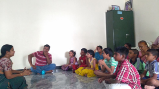 கோடைவிடுமுறையில் குழந்தைகளை ஒன்று கூட்டி எனது கடவுளின் நாக்கு புத்தகத்திலுள்ள கதைகளைப் பகிர்ந்துவருகிறார்கள் இரண்டு ஆசிரியர்கள்.