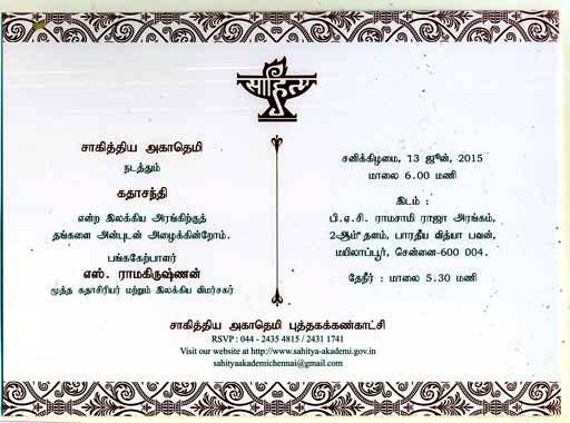 வருகின்ற சனிக்கிழமை 13.06.2015 மாலை ஐந்தரை மணிக்கு சாகித்ய அகாதமி சார்பில் நடைபெறும் கதாசந்தி நிகழ்வில் பசித்த மிருகம் என்ற எனது புதிய சிறுகதையை வாசிக்க இருக்கிறேன்.