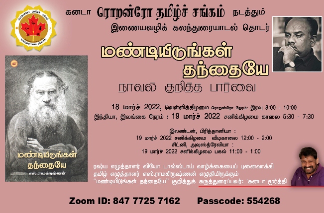 ரொறன்ரோ தமிழ்ச் சங்கம் நடத்தும் இணைய வழிக் கலந்துரையாடல்