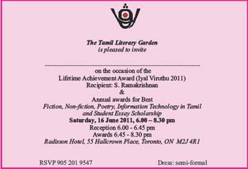 நான் இயல்விருது பெறும் நிகழ்ச்சி ஜுன் 16ம் தேதி மாலை ஆறுமணிக்கு டொரன்டோவில் நடைபெறுகிறது