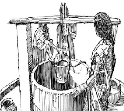 அவர்கள் வாழை இலையில் அரிசியைப் பரப்பினார்கள். பூ மாலையைக் கிணற்றுக்குச் சூடினார்கள். உருளையில் பூவைக் கிள்ளி சொருகினான் இளைஞன்.