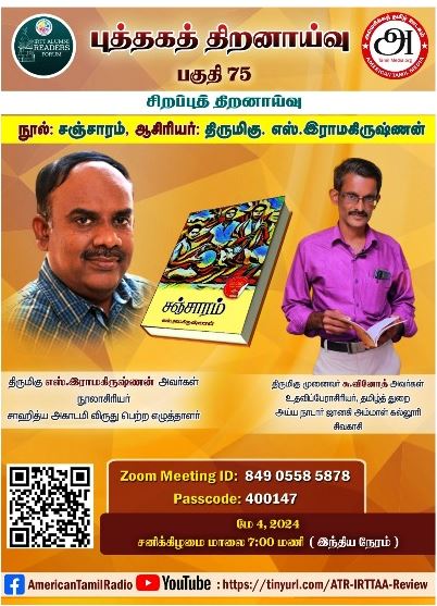 நாளை ( 04.05.24) இரவு ஏழு மணிக்கு இணைய வழியாக சஞ்சாரம் நாவலுக்கான திறனாய்வு நடைபெறுகிறது. இந்த நிகழ்வில் சஞ்சாரம் குறித்து முனைவர் சு.விநோத் உரையாற்றுகிறார்.