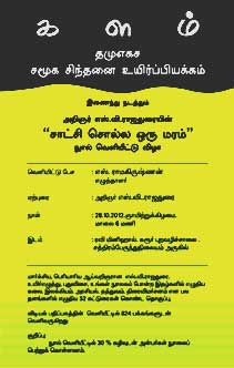 திருச்சியில் வரும் ஞாயிறு மாலை, சிந்தனையாளரும், சமூகப்போராளியுமான எஸ்.வி.ராஜதுரை அவர்களின் சாட்சி சொல்ல ஒரு மரம் நூல் வெளியீட்டு நிகழ்ச்சி நடைபெற உள்ளது,