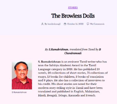 எனது The Browless Dolls சிறுகதை அதில் ஒன்றாக இடம் பெற்றுள்ளது.