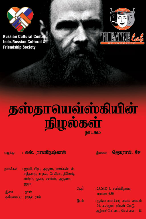 எனது புதிய நாடகம் 25 .06.2016 சனிக்கிழமை மாலை ஆறரை மணிக்கு ஆழ்வார்பேட்டையிலுள்ள ரஷ்ய கலாச்சார மையத்தில் நடைபெறுகிறது .தியேட்டர் லேப் நாடகக்குழு இதனை நடத்துகிறது அனைவரும் கலந்து கொள்ளலாம். அவசியம் வருக. 0Shares0