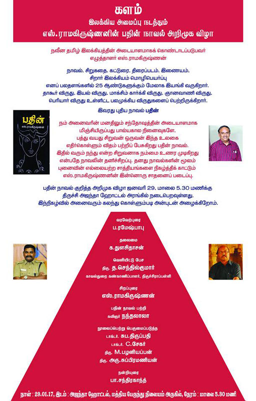 பதின் நாவலுக்கான அறிமுகக்கூட்டம் திருச்சியில் நடைபெறுகிறது
