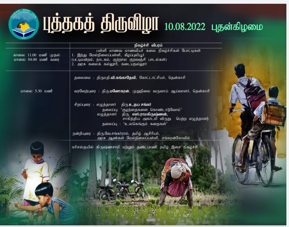 தென்காசி புத்தகத் திருவிழாவில் ஆகஸ்ட் 10 புதன்கிழமை மாலை உலகெங்கும் கதைகள் என்ற தலைப்பில் உரையாற்றுகிறேன்.