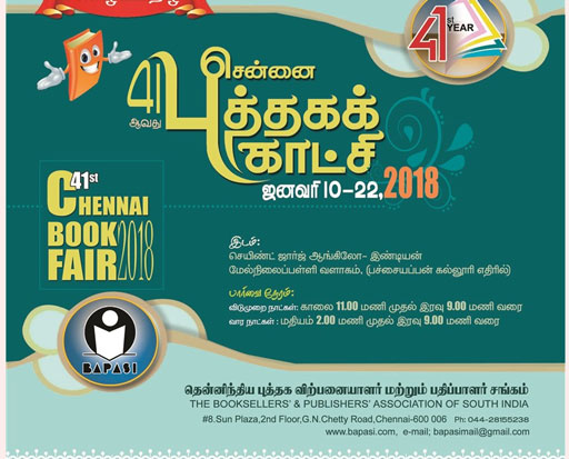 சென்னை பச்சையப்பன் கல்லூரி எதிரிலுள்ள செயிண்ட் ஜார்ஜ் ஆங்கிலோ இந்திய மேல்நிலைப்பள்ளி வளாகத்தில் நடைபெறவுள்ள சென்னை புத்தகக் காட்சியில் தேசாந்திரி பதிப்பகம் அரங்கு அமைத்துள்ளது