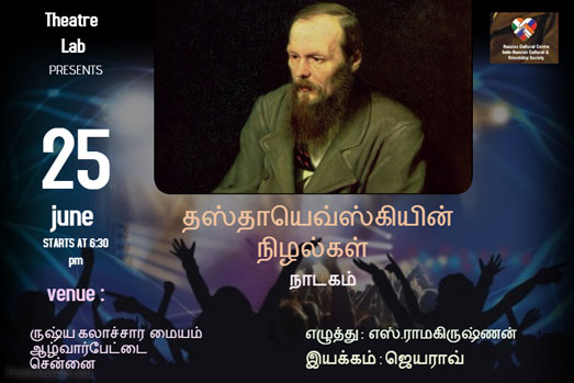 எனது புதிய நாடகம் தஸ்தாயெவ்ஸ்கியின் நிழல்கள் ஜுன் 25 சனிக்கிழமை மாலை ஆறரை மணிக்கு நடைபெற உள்ளது.