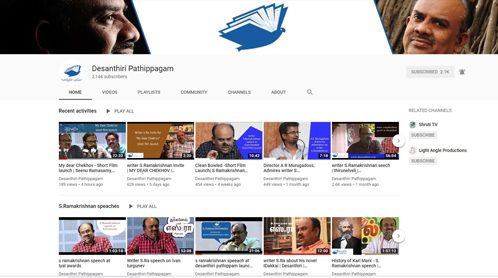 எனது இலக்கிய உரைகள். நிகழ்வுகளைக் காணொளியாகக் காண்பதற்கு தேசாந்திரி youtube சேனல் துவங்கப்பட்டுள்ளது. அதில் இணைந்து கொள்வதன் வழியே எனது உரைகளை நீங்கள் தொடர்ந்து காணலாம்.