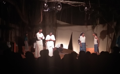 இத்தனை சிரிப்பும் சந்தோஷமாக ஒரு நாடகத்தைப் பார்த்து நீண்டகாலமாகிவிட்டது பார்வையாளர்கள் சிரித்துக் கைதட்டி உற்சாகமாகயிருந்தார்கள். நாடகத்துறையில் பயிலும் கேரள மாணவர்கள் தான் முக்கியக் கதாபாத்திரங்களாக நடித்தவர்கள். அற்புதமான நடிகர்கள். ஒருவரையொருவர் போட்டி போட்டுக் கொண்டு நடித்தார்கள்.