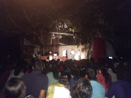 நண்பரும் நடிகருமான சுகுமார் இந்த நாடகம் குறித்துத் தெரிவித்திருந்தார். புதுச்சேரி பல்கலைக்கழக வளாகத்தினுள்ளே அரங்கை உருவாக்கியிருந்தார்கள். ஒரு மரத்தடி அதைச் சுற்றி அரங்க அமைப்பு. ஏராளமான மாணவர்கள் நாடகம் பார்க்க வந்திருந்தார்கள்.