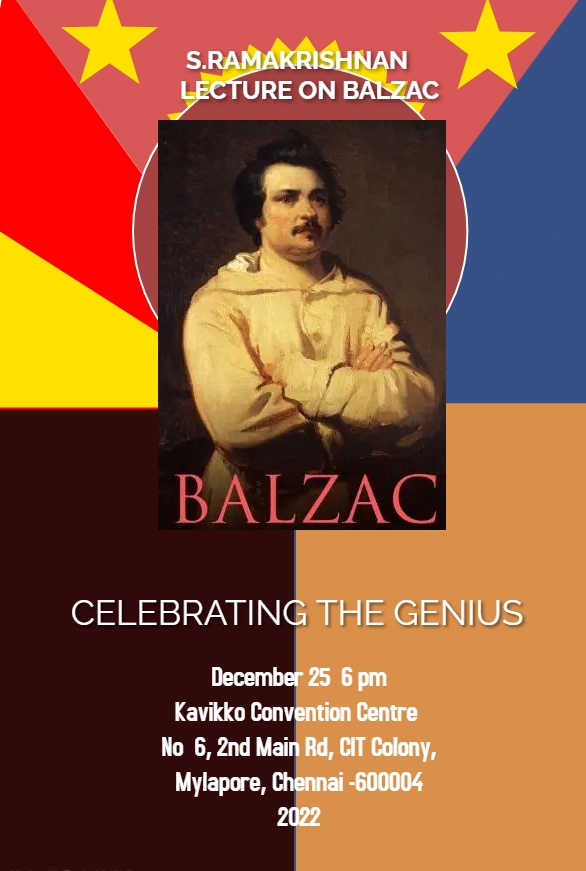 இந்த முறை டிசம்பர் 25 ஞாயிறு மாலை பிரெஞ்சு இலக்கியத்தின் நிகரற்ற படைப்பாளி பால்சாக் பற்றி உரை நிகழ்த்த இருக்கிறேன்.