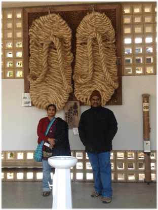 நுழைவாயிலில் பாஷோவின் உருவத்தைப் போன்ற மாதிரி நிறுத்தப்பட்டிருக்கிறது. அதில் தலைப்பகுதி ஒட்டையாக உள்ளது, அதில் நமது தலையைப் பொருத்தி புகைப்படம் எடுத்துக் கொள்ள வேண்டும் என்றார்கள்.