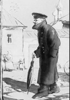 ஒரு நாள் அவர் வாரிங்காவுடன் வீதியில் நடந்து போவதைக் கண்ட குறும்புக்காரர்கள் அதைப் பற்றிக் கேலிச்சித்திரம் ஒன்றை வரைந்து விடுகிறார்கள். இந்தச் சித்திரம் பெலிகோவ் மனதை மிகவும் வேதனைப்படுத்துகிறது