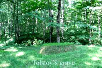 மரணத்திற்குப் பிறகு தன்னை கல்லறையில் புதைக்க கூடாது, கல்லறைவாசகம் எதுவும் எழுதி வைக்ககவும் கூடாது என்று டால்ஸ்டாய் தனது உயிலில் குறிப்பிட்டிருந்தார், அவரது உடல் அவரது வீட்டின் பின்புறமுள்ள தோட்டத்தில் மரங்களுக்கு இடையே புதைக்கப்பட்டு புல்வளர்ந்து போயிருக்கிறது, இந்த மண்ணில் உருவான ஒரு தானியம் மண்ணிற்குள் அடங்கிவிட்டது என்பதன் அடையாளமாக, எளிமையுடன் உள்ளது அந்தப் புதைமேடு