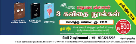 பணம் செலுத்திவிட்டு புத்தகம் அனுப்ப வேண்டிய முகவரியை uyirmmai@gmail.com என்ற முகவரிக்கு மின்னஞ்சல் மூலமாகவோ 9003218208 என்ற என்ணிற்கு வாட்ஸ் அப்–எஸ்.எம். எஸ் மூலமாகவோ தெரிவியுங்கள்.