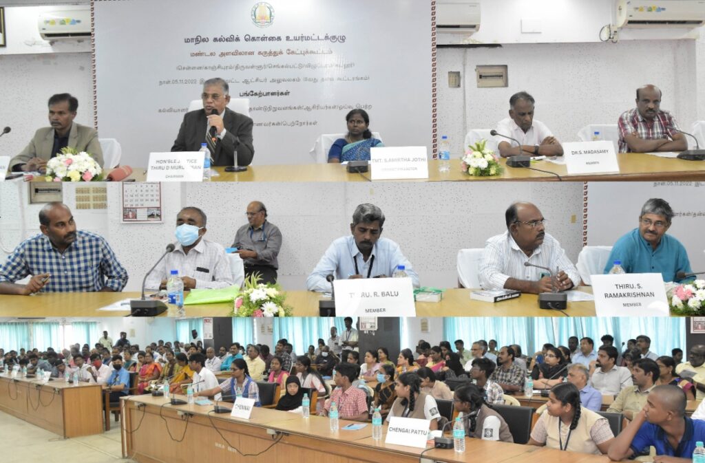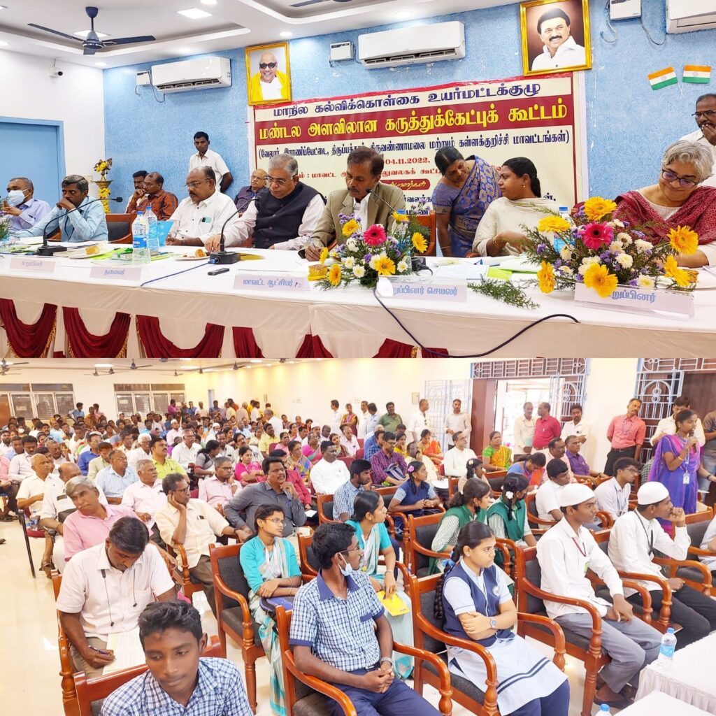 தமிழகம் முழுவதும் ஆசிரியர்கள். மாணவர்கள், தன்னார்வ அமைப்புகள். பெற்றோர்கள், கல்வியியல் அறிஞர்கள், பொதுமக்களைச் சந்தித்துக் கருத்துக் கேட்கும் கூட்டம் நடைபெற்றது. இதில் நானும் கலந்து கொண்டேன்.