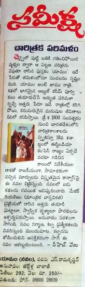 ஈநாடு என்ற தெலுங்கு நாளேடில் எனது யாமம் மொழிபெயர்ப்பு குறித்த விமர்சனம் வெளியாகியுள்ளது. நாவலை மிகச்சிறப்பாகப் பாராட்டியுள்ளார்கள். மொழிபெயர்ப்பாளர் பாலாஜிக்கு அன்பும் நன்றிகளும் 0Shares0