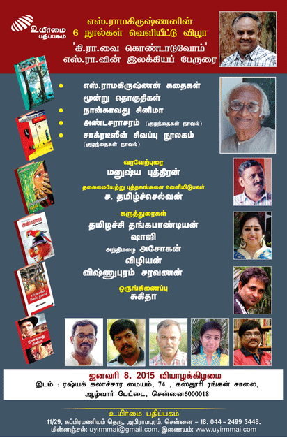அத்துடன் சிறார்களுக்காக எழுதியுள்ள நாவல், உலகசினிமா குறித்த கட்டுரைத் தொகுதி உள்ளிட்ட புத்தகங்கள் ஜனவரி 8ம் தேதி வியாழன் மாலை சென்னை, ரஷ்யக்கலாச்சார மையத்தில் வெளியிடப்பட உள்ளன.