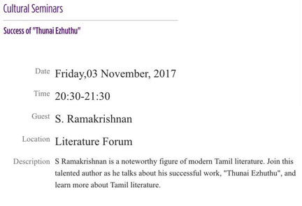 ஷார்ஜா புத்தக கண்காட்சியில் நவம்பர் 3 வெள்ளிகிழமை இரவு 8 : 30 மணிக்கு உரையாற்றுகிறேன்