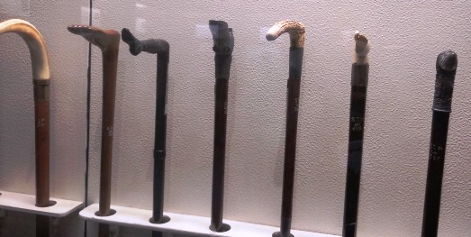 விதவிதமான கைத்தடிகளுக்கு என்றே ஒரு அரங்கிருக்கிறது. அங்குள்ள சில கைத்தடிகளில் கால் பாதம் போன்ற அமைப்பைச் செய்திருக்கிறார்கள். காலை கையில் பிடித்துக் கொண்டு செல்வது என்பது விநோதமாக இருக்கிறது. விதவிதமான நிறங்களில் வடிவங்களில் கைத்தடிகள். இந்தக் கைத்தடிகளுக்குப் பின்னே மேற்குலகின் பண்பாடும் உயர் வகுப்பு அந்தஸ்தும் மறைந்திருக்கிறது. அந்தக் கைத்தடிகள் அரங்கில் நின்றபோது  கோணங்கி எழுதிய கைத்தடி கேட்ட நூறு கேள்விகள் என்ற கதை நினைவில் எழுந்தது . கைவிடப்பட்ட விவசாயி ஒருவர் மதுரை நகரில் ஊன்றுகோலுடன் சுற்றி அலைகிறார். அவரது வறுமையும் அவலமும் கதையில் சிறப்பாகச் சித்தரிக்கப்பட்டிருக்கிறது. அந்த விவசாயி வைத்துள்ள கைத்தடி கேள்விகேட்பதாகக் கோணங்கி எழுதியிருப்பார். இங்கே சில விநோத கைத்தடிகளைக் காணும் போது அதைப் பயன்படுத்திய மனிதன் யாராக இருப்பார் என்ற கேள்வி தோன்றவே செய்தது