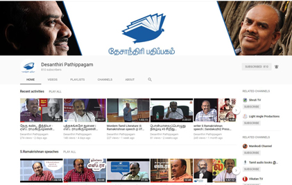 எனது உரைகள் யாவும் தேசாந்திரி பதிப்பகம் சார்பில் உருவாக்கபட்டுள்ள யூடியூப் சேனலில் பார்வைக்கு உள்ளன.