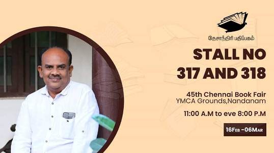 சென்னை நந்தனத்தில் நடைபெறுகிற 45வது புத்தகக் கண்காட்சியில் தேசாந்திரி பதிப்பகம் அரங்கு அமைத்துள்ளது அரங்கு எண் 317 மற்றும் 318 ஐந்தாவது நுழைவாயில் வழியே வந்தால் அரங்கினைக் காணலாம். எல்லா நாட்களும் புத்தகக் கண்காட்சிக்கு வருவேன். சந்திக்க விரும்புகிறவர்கள் தேசாந்திரி பதிப்பகத்தின் அரங்கில் என்னைச் சந்திக்கலாம். எனது நூல்கள் யாவும் தேசாந்திரியில் கிடைக்கின்றன.